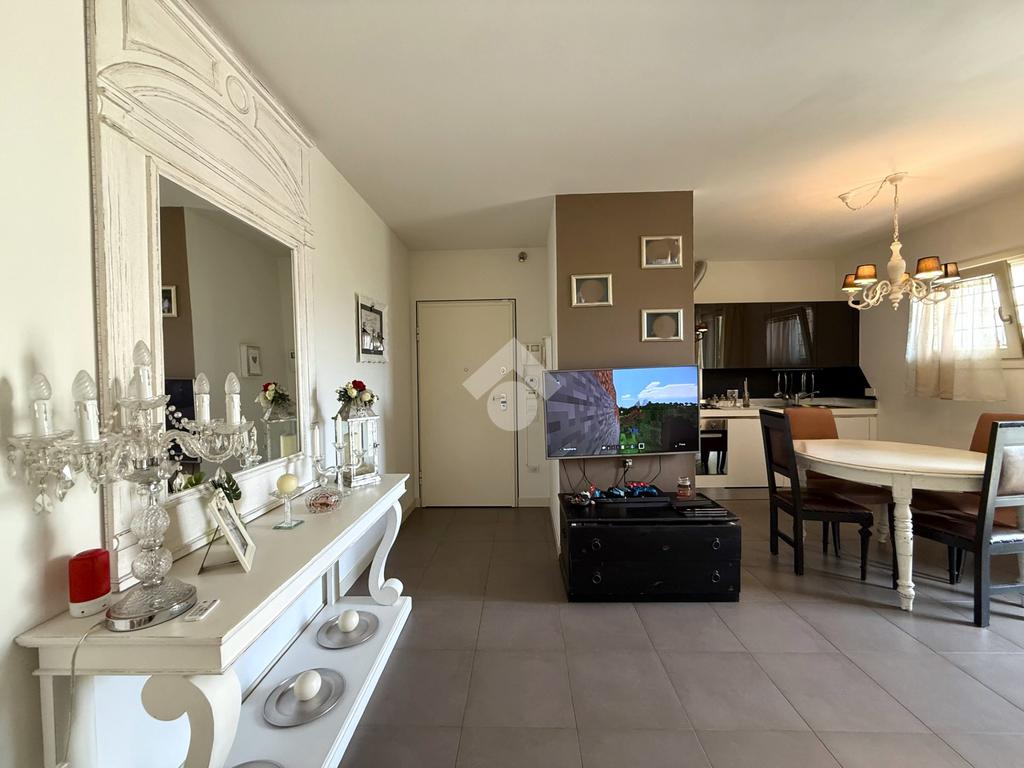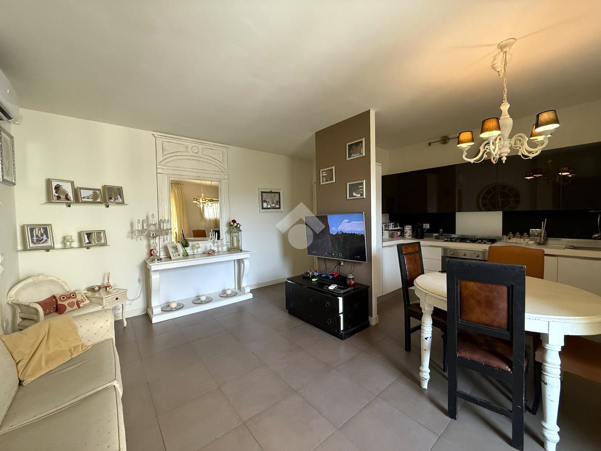 L'ingresso ci conduce all'ampia e luminosa zona giorno, open space con angolo cottura al cui servizio è stata concepita una bella e spaziosa terrazza abitabile, in un angolo della quale è stata collocata una comoda lavanderia.