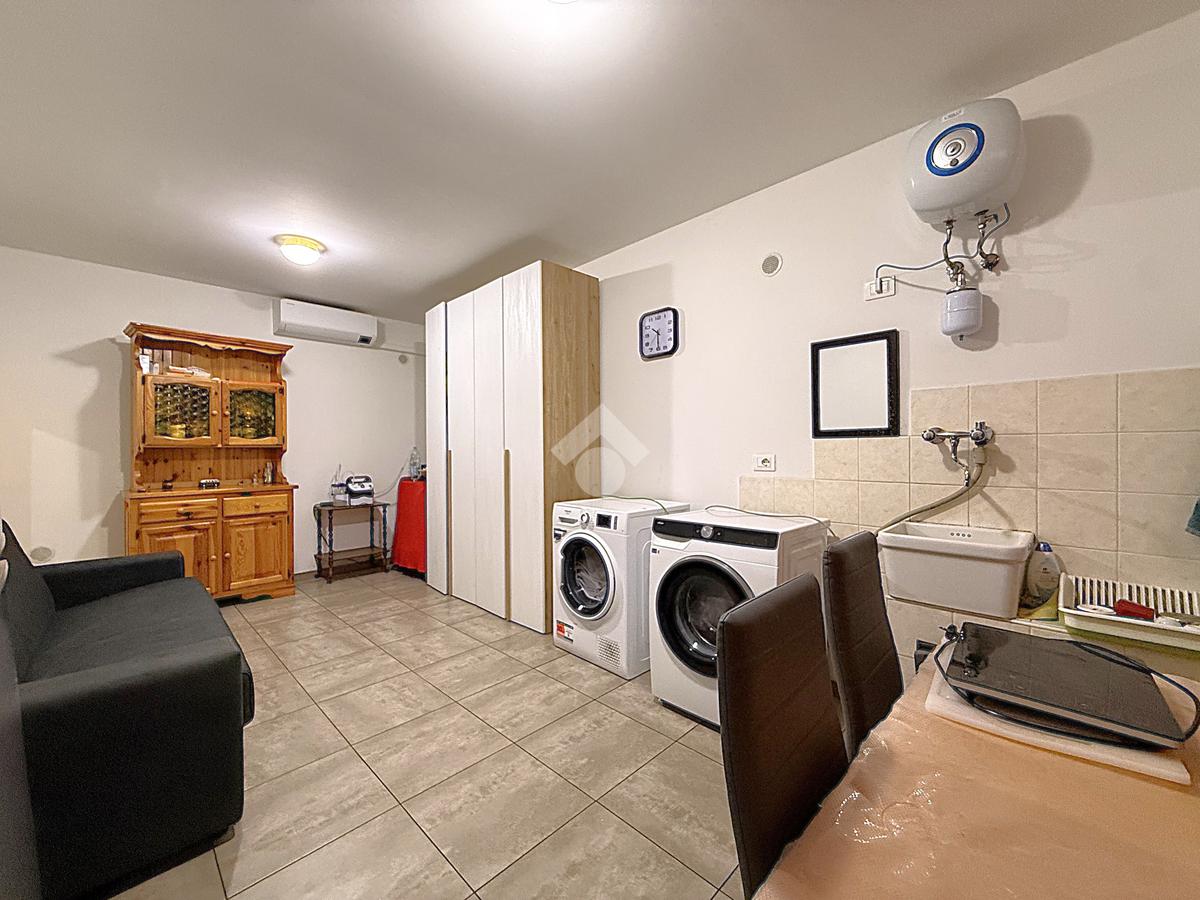 Al piano terra è stato sfruttato lo spazio esistente, di generosa metratura, per realizzare una comoda lavanderia in aggiunta ad un ripostiglio ricavato nel sottoscala; tale spazio può essere sfruttato anche per attrezzare una vera e propria taverna oppure un'ampia camera matrimoniale.
