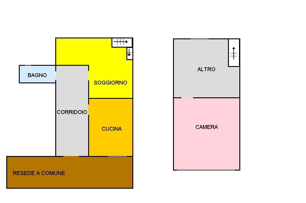 L'immobile ha al piano terra la zona giorno divisa tra la cucina abitabile, il soggiorno e un bagno finestrato.